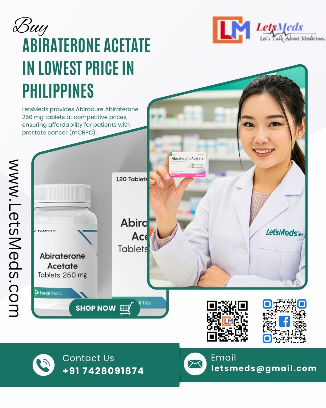 If you’ve been checking prices locally, you know how expensive branded options are, while generic Abiraterone Acetate 250 mg offers affordable alternatives without compromising quality. But the good news is, there’s a trusted supplier — LetsMeds — making cancer medicines more affordable in the Philippines.