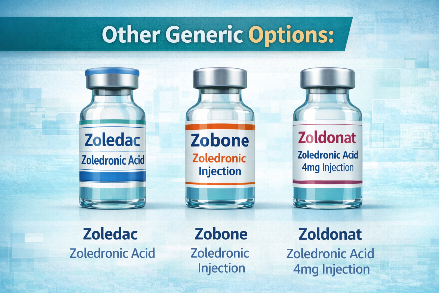 Several generic zoledronic acid products are available internationally, including: